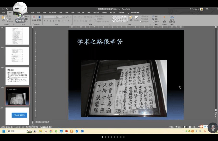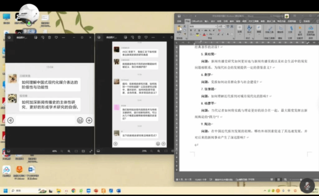 讲座后半部分由李老师的两位研究生为大家分享自己在进行新闻史研究过程中的心得体会。在新闻传播史研究过程中,要学会正确的理解和广泛多元地运用史料,不断增强自己收集与分析史料的能力,保持历史敏感性,不要有刻板印象等不客观的、带有个人情绪与价值的内容出现。此外,学生在论文写作过程中一定要严格遵守学术规范,制定论文写作计划,提早与导师沟通,早沟通、早修改。
