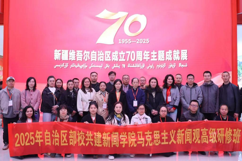 除了理论教学外,学院还在培训课程中精心安排了现场教学环节。学员们集体走进新疆大学校史馆,前往乌鲁木齐文化中心展览馆,参观“自治区成立70周年主题成就展”,并进行了一场深入而生动的学习之旅。